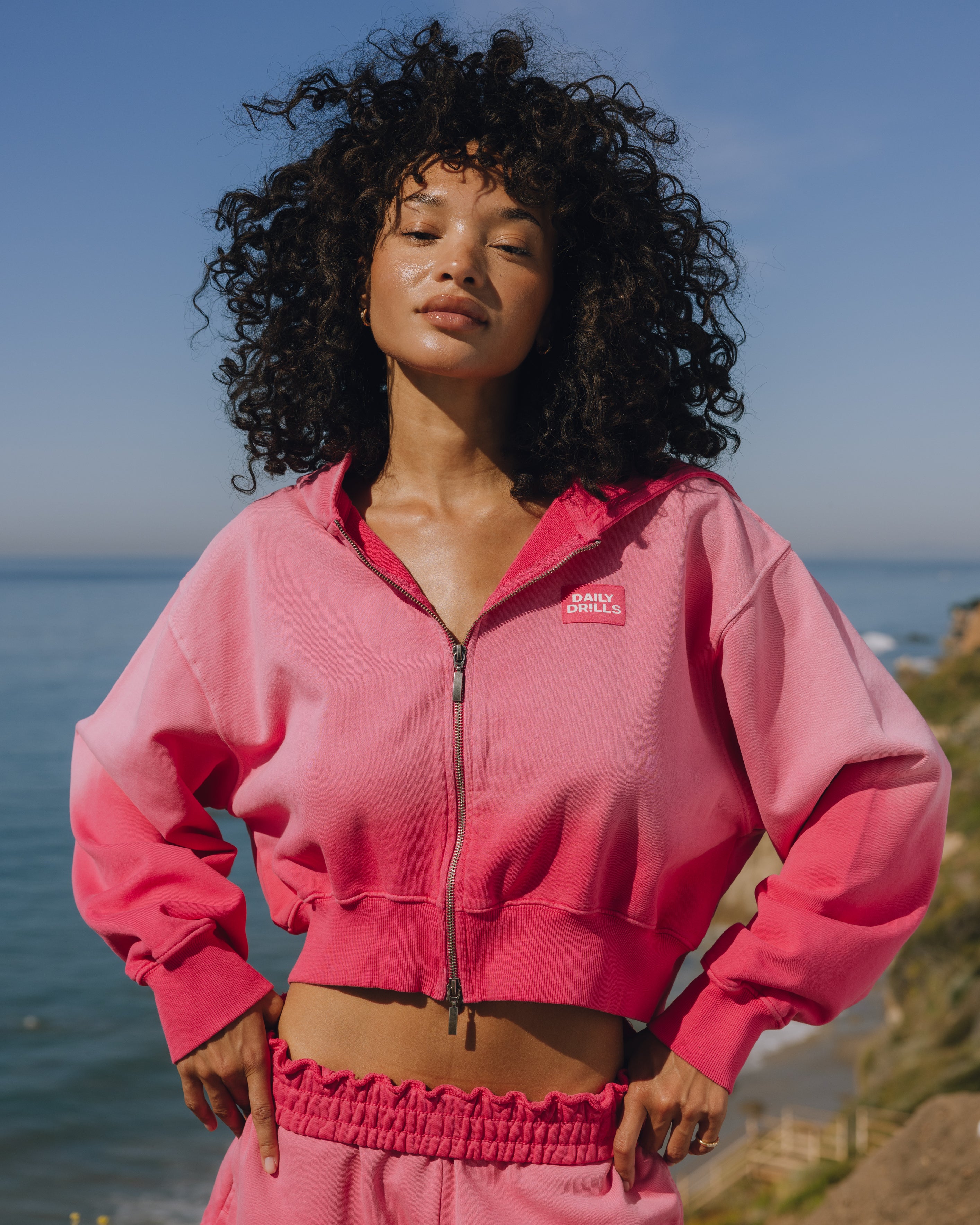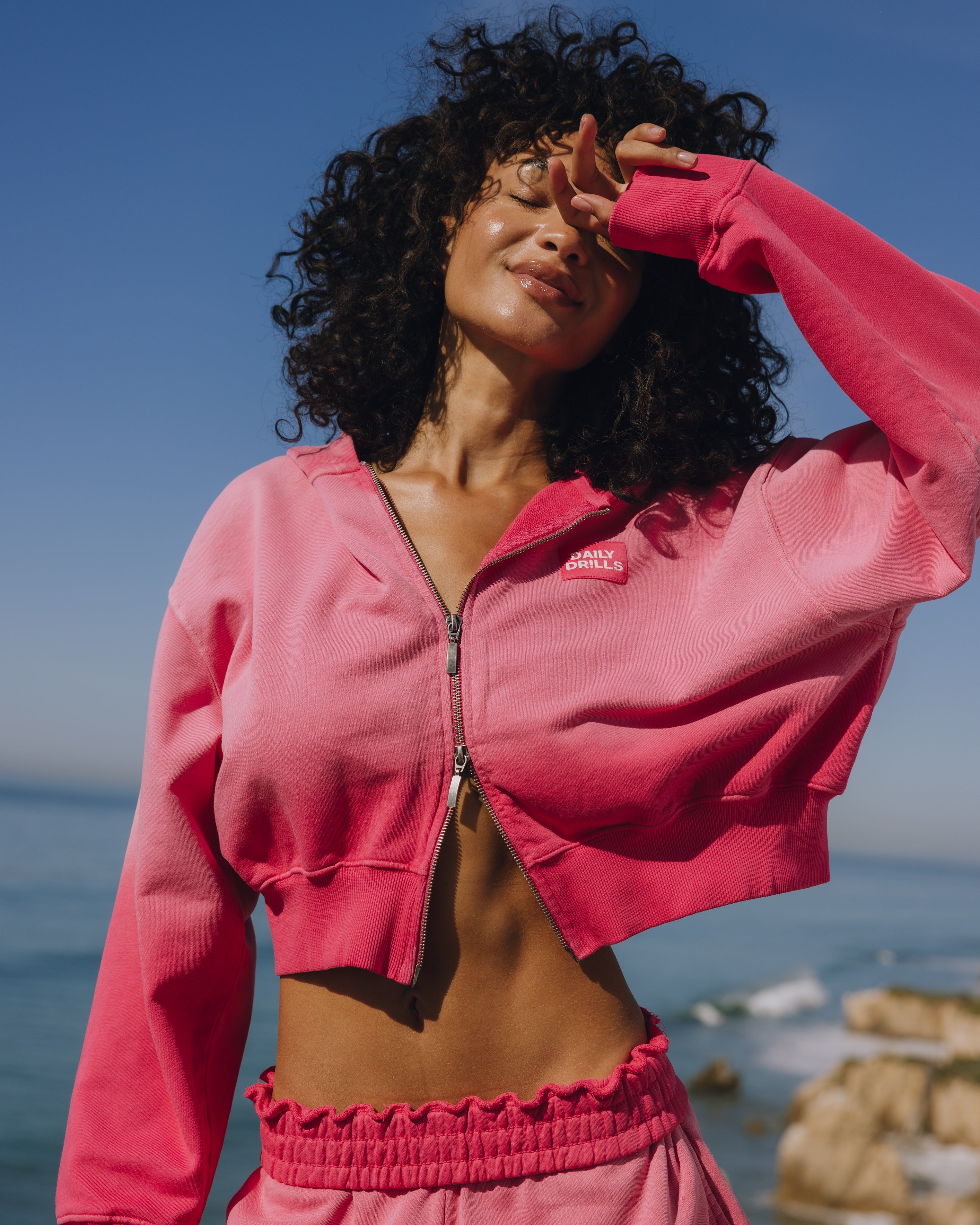 cropped fit with a cinched waist & double zipper