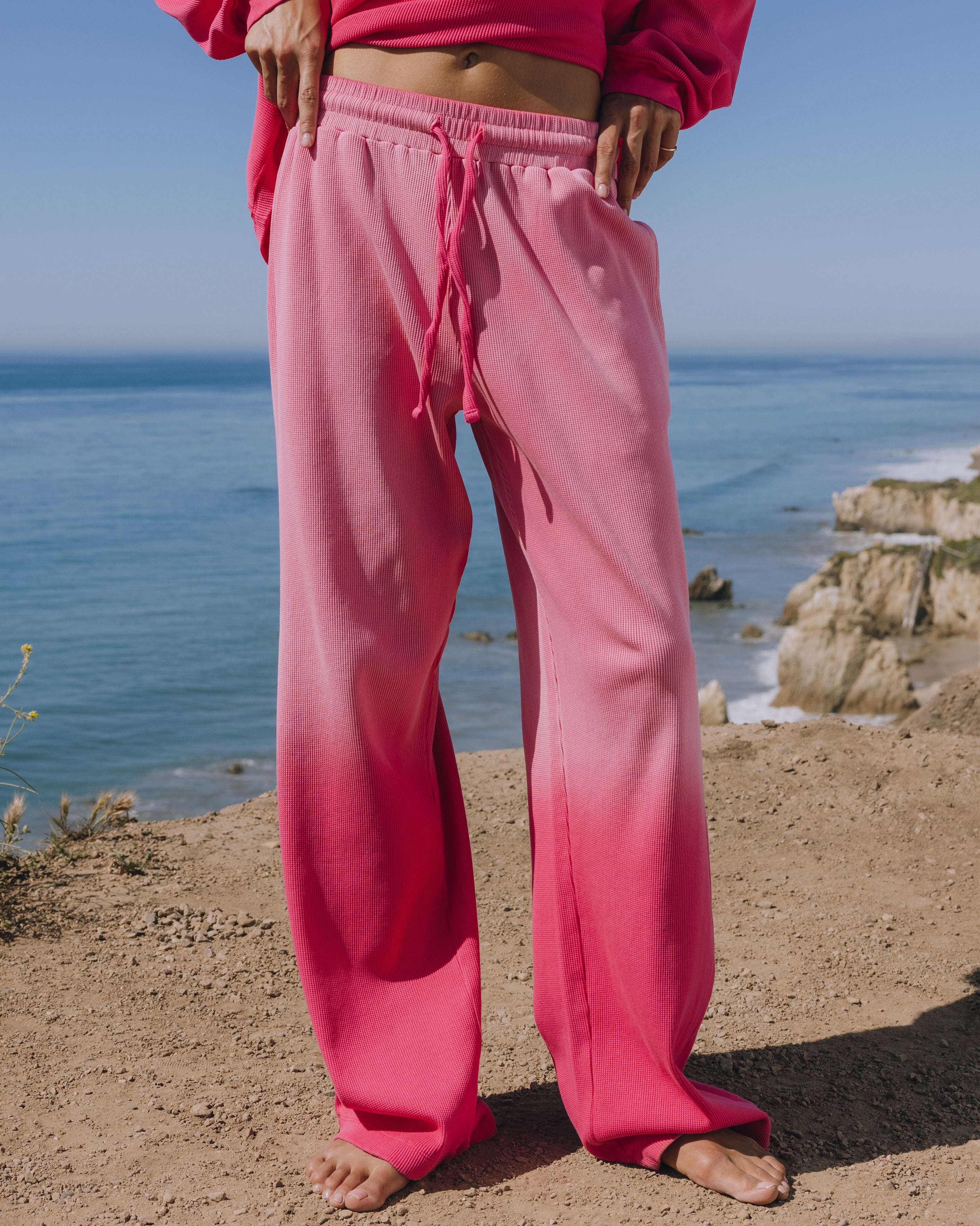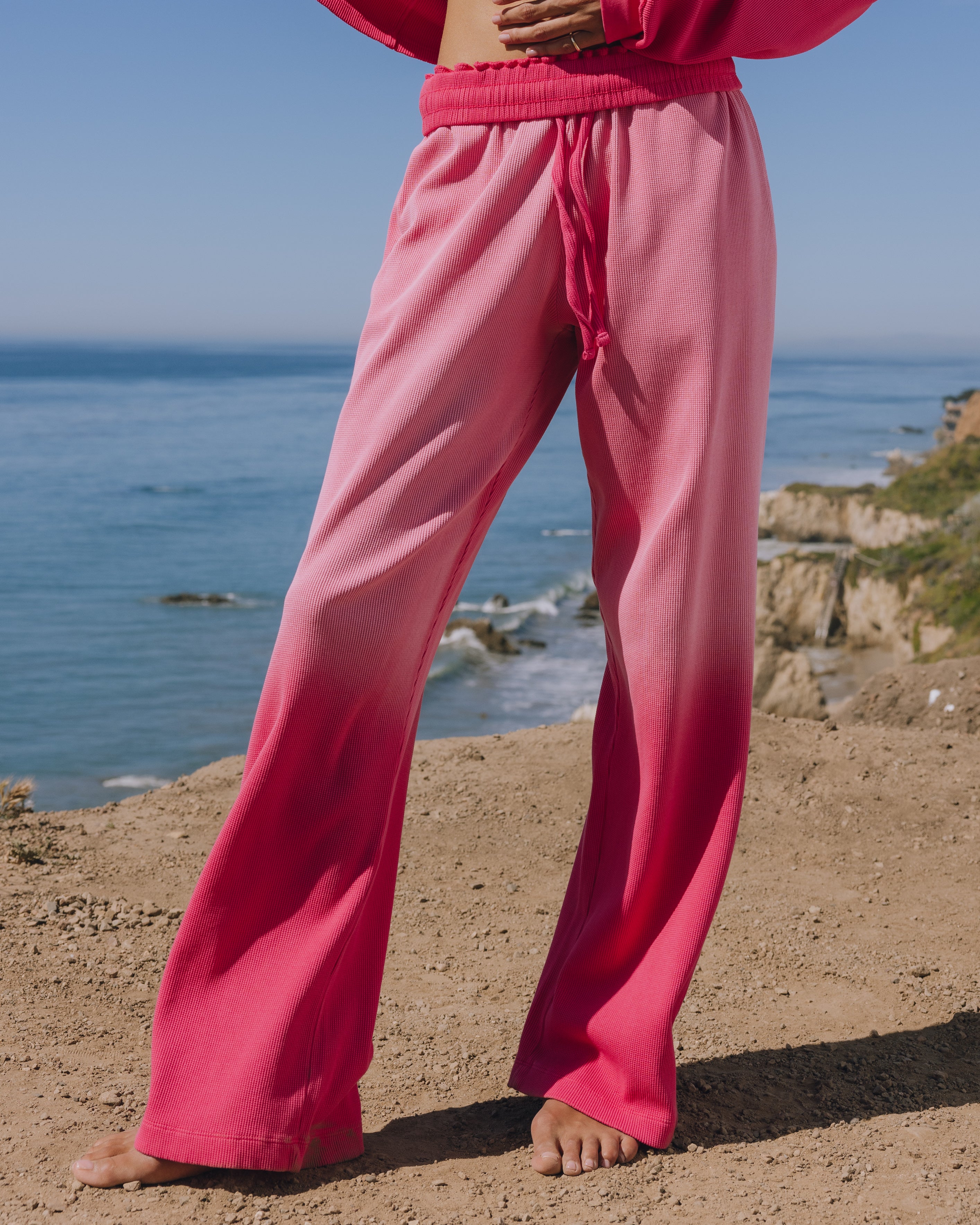 full length, wide leg with adjustable drawstrings