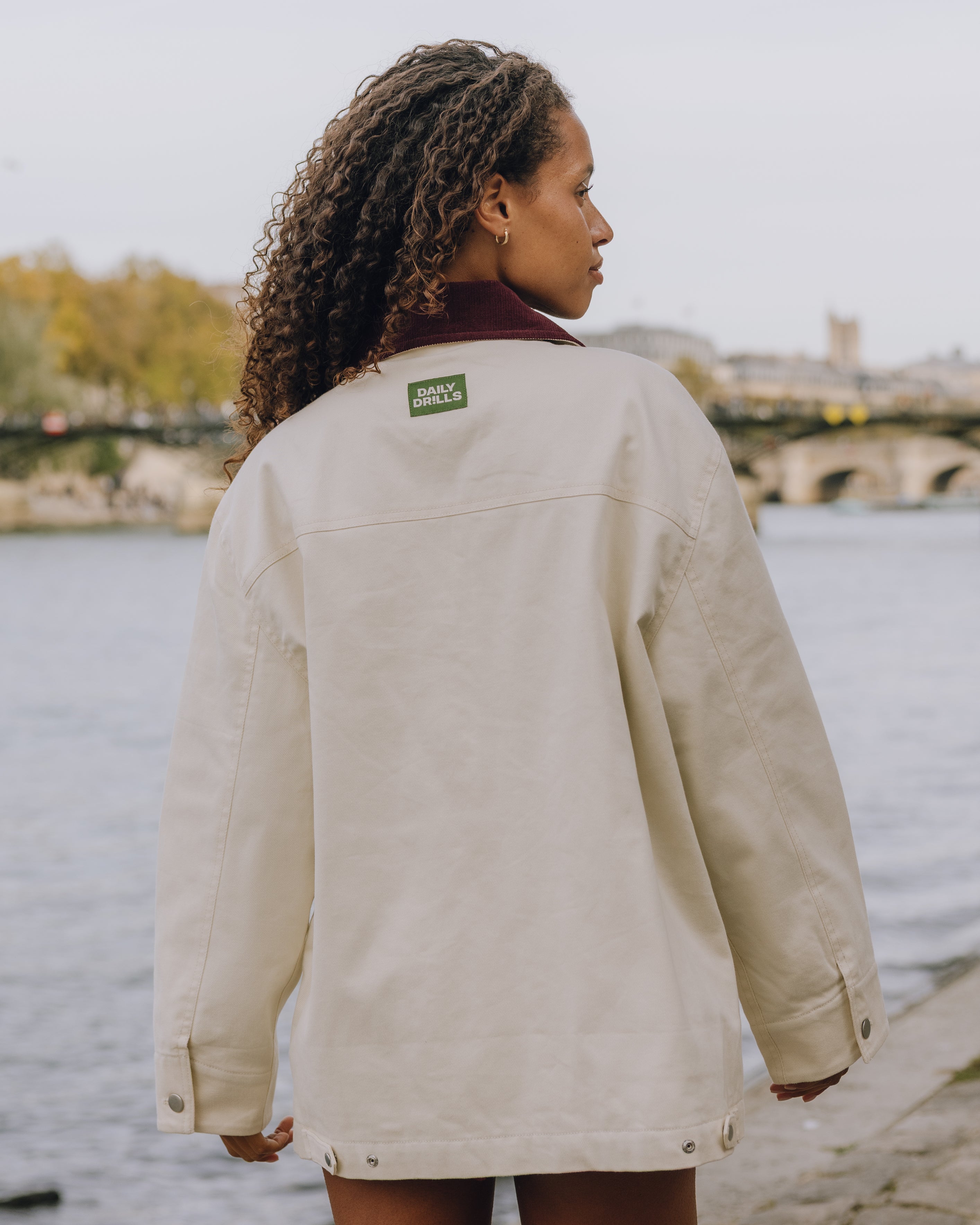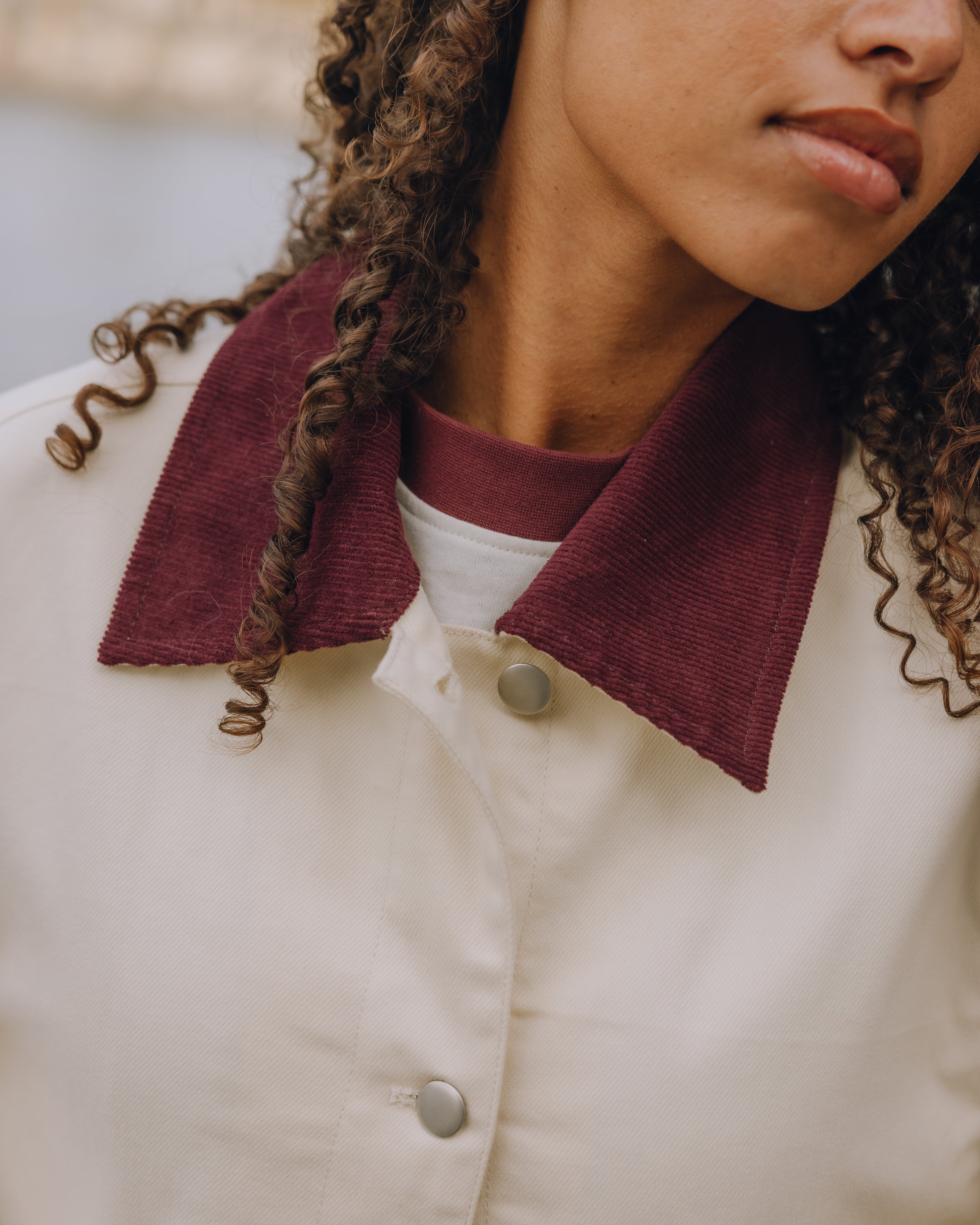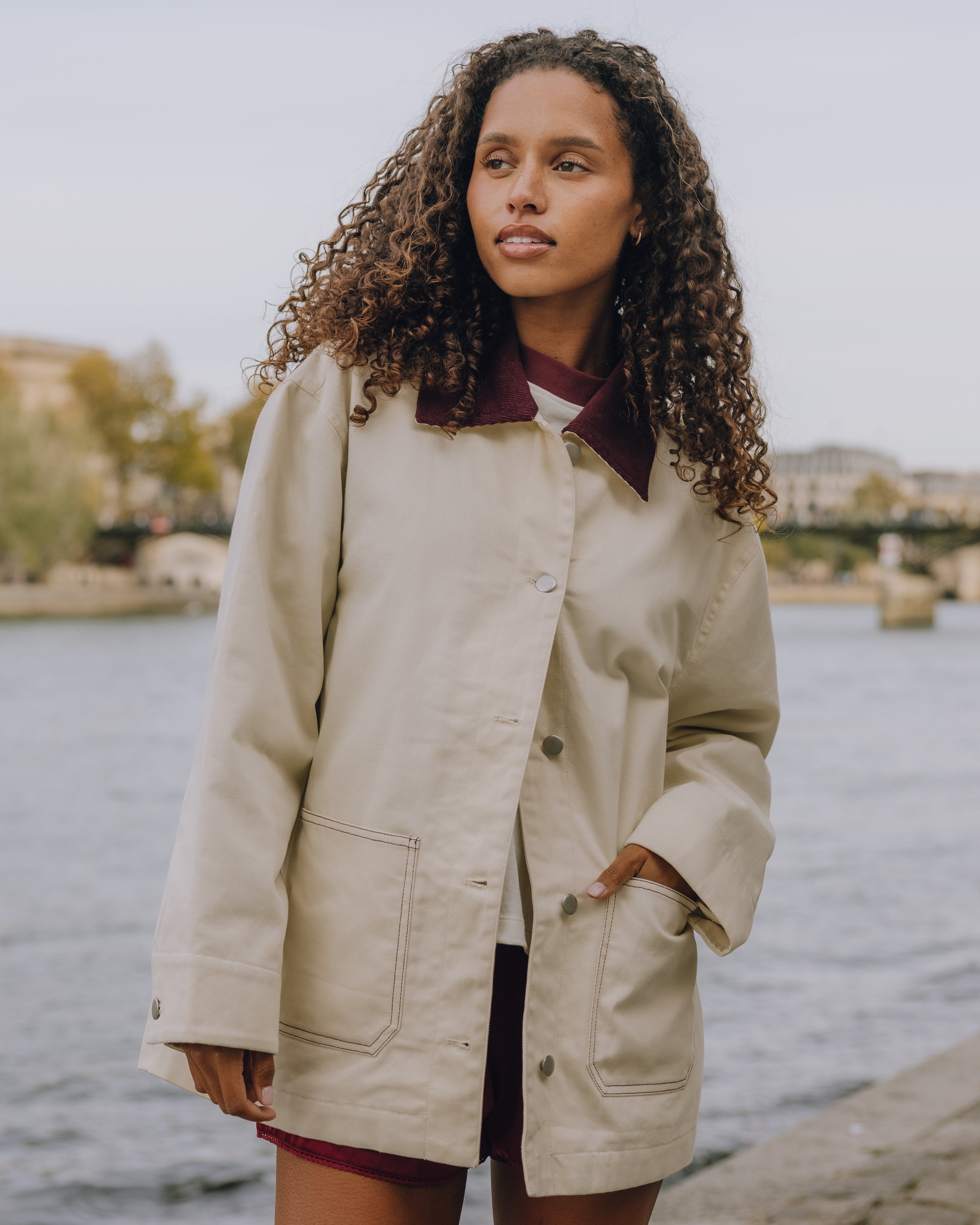boxy, full length with drop shoulder and corduroy collar