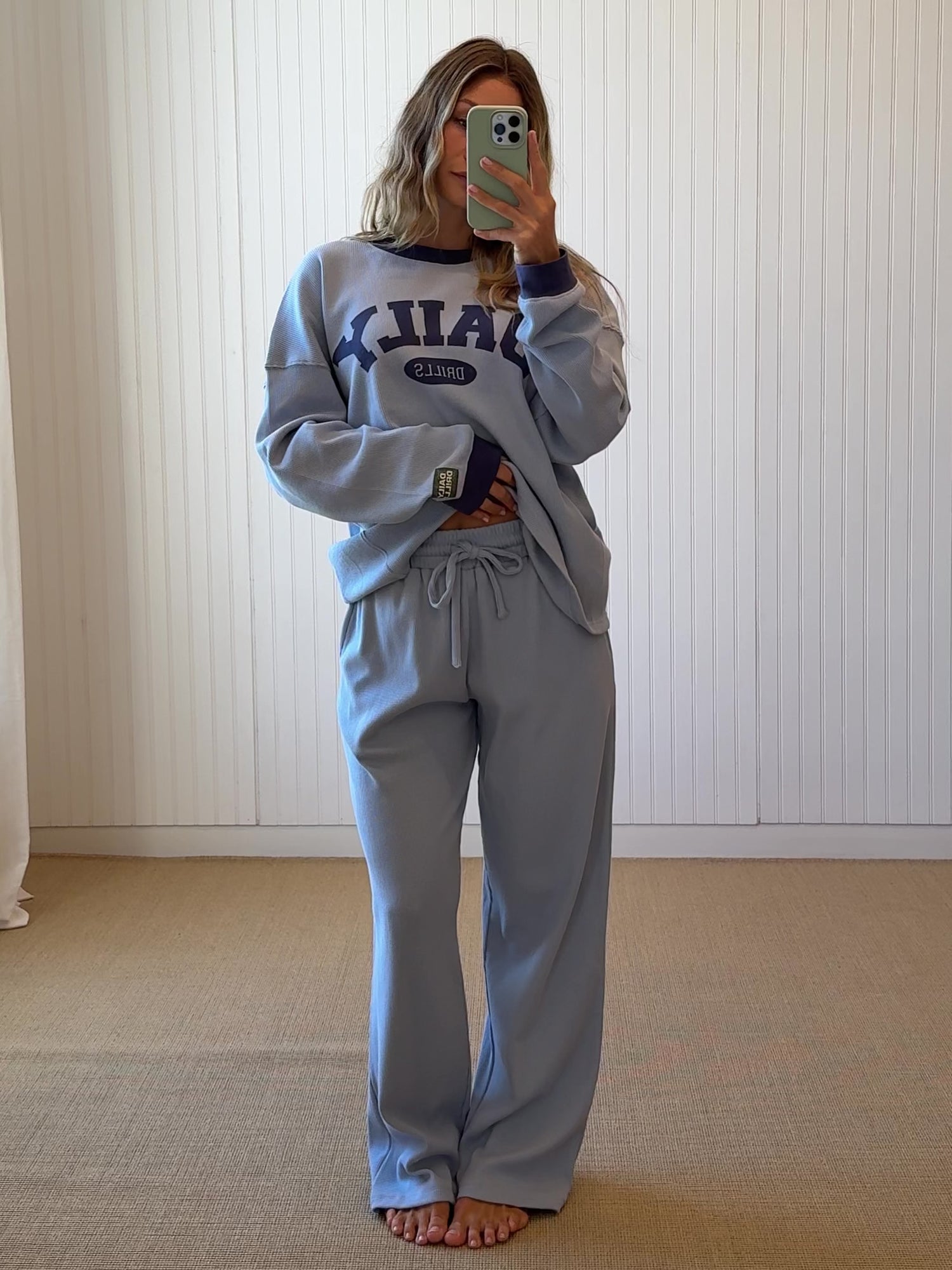full length, wide leg with adjustable drawstrings